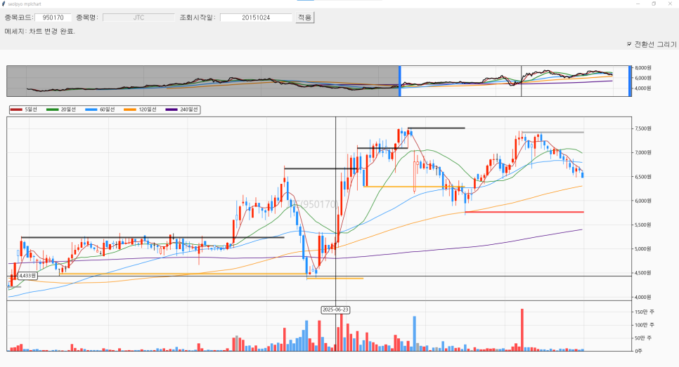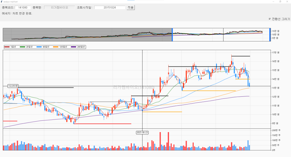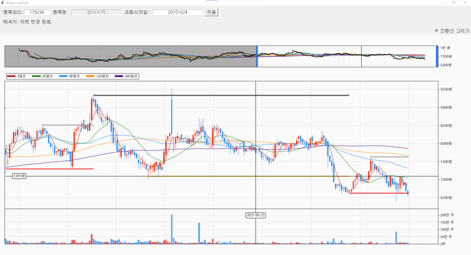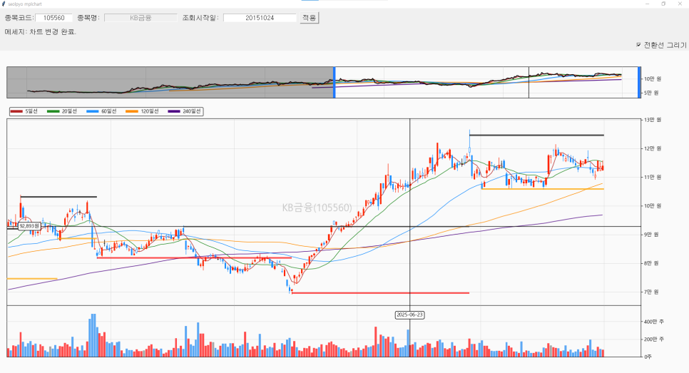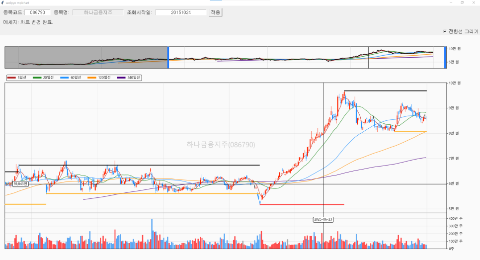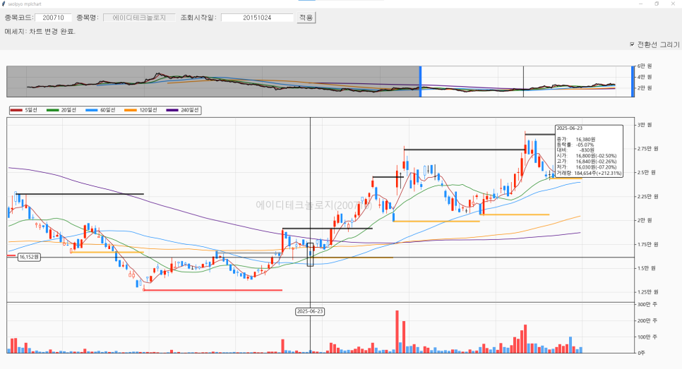 횡보하던 중 전고점을 돌파하고, 상승한 주가를 유지하는 중