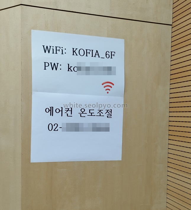 강의실 입구 옆에 이용 가능한 와이파이 정보가 프린트되어 붙어있었다.