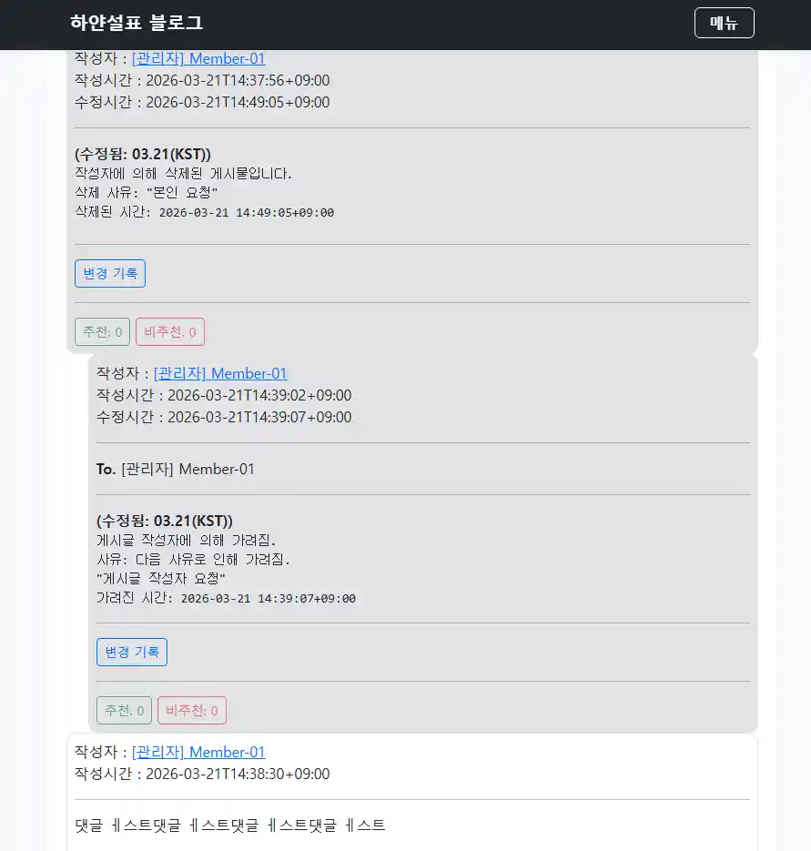 나무위키의 글 변경 역사 기능처럼 글을 수정하는 경우 기존 내용을 보관하도록 만들었다.