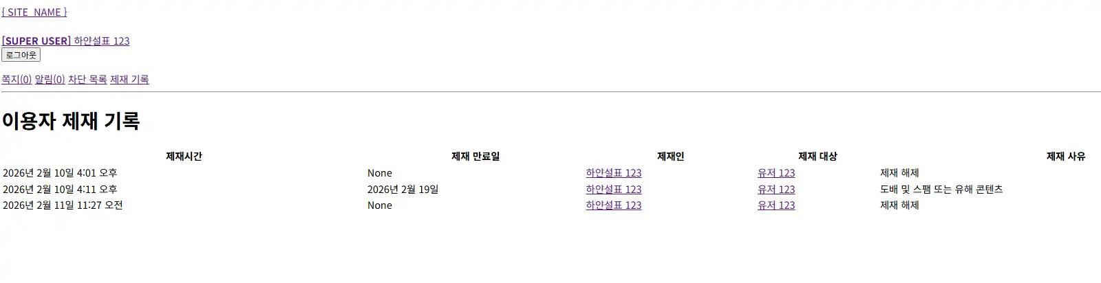 이용자 제재 기능