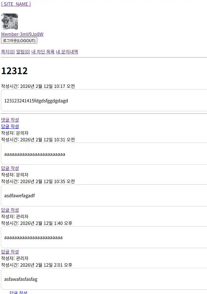 관리자에게 1:1로 문의할 수 있는 문의 게시판 기능을 추가했다.