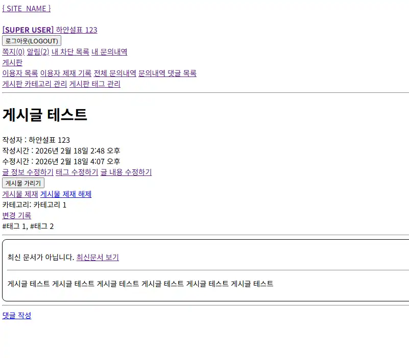 나무위키의 글 변경 역사 기능처럼 글을 수정하는 경우 기존 내용을 보관하도록 만들었다.