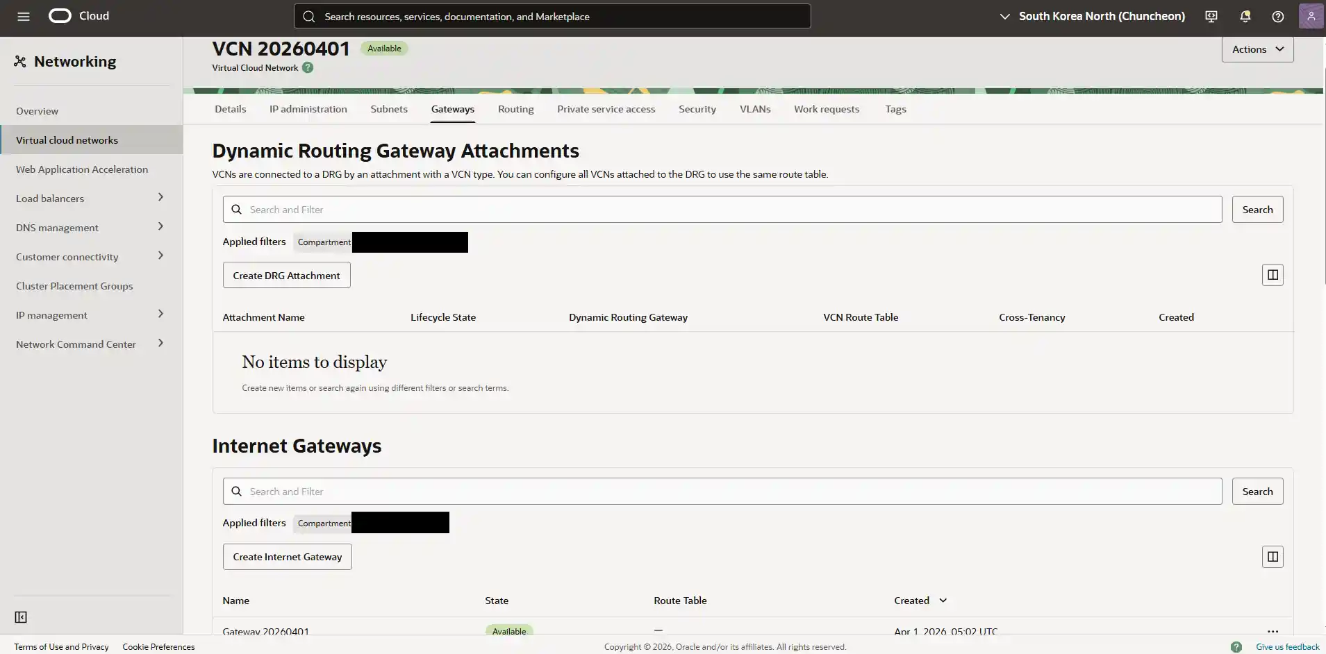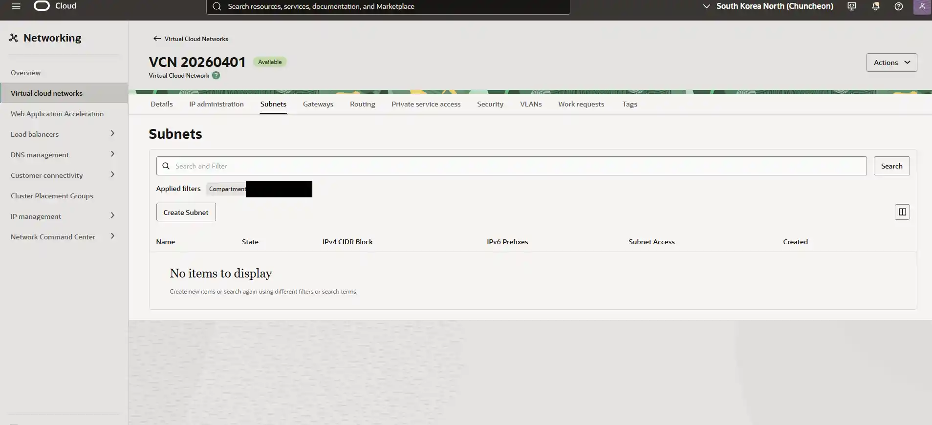 [Networking] > [Virtual Cloud Networks]